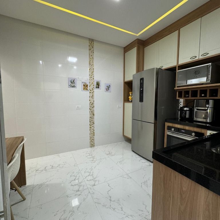 Casa com 2 dormitórios à venda, 120 m² por R$ 750.000,00 - Vila Caiçara - Praia Grande/SPLindo sobrado Sala dois ambientes teto rebaixado, 2 dormitórios sendo ambos suíte, com moveis planejados, sacada envidraçada, 2 lavabos com planejados, área gourmet, escada de granito, com envidraçamento lateral e degraus flutuantes, janela ampla na sala o que facilita iluminação e ventilação.Localização privilegiada a poucas quadras de padarias, mercados, farmácias e demais rede de infra estrutura.Agende já sua visita!