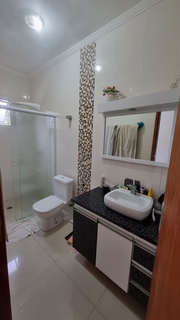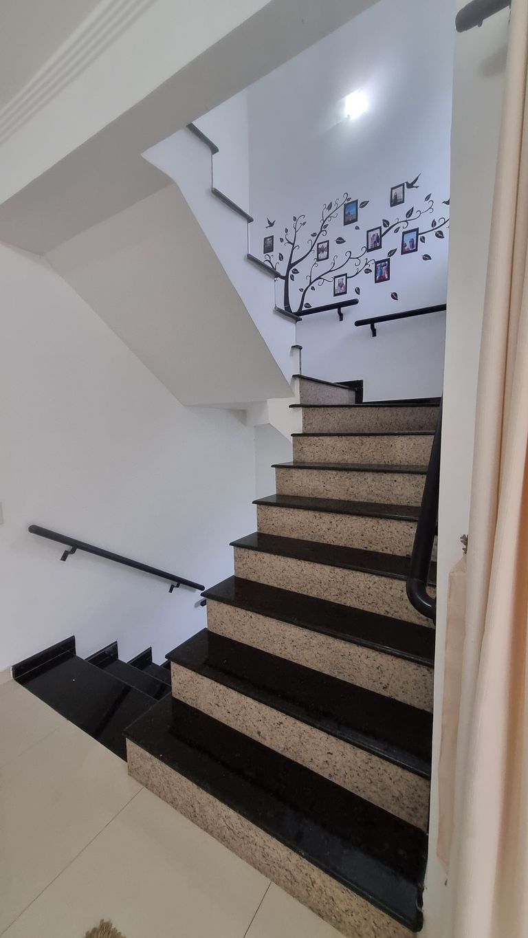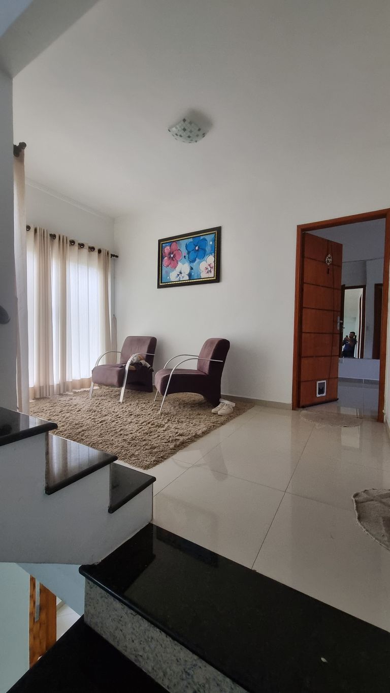 piso térreo: Sala, Cozinha, sala de jantar, lavabo, lavanderiagaragem para 3 carros, jardim1º andar: 2 suites , 1 sala, e uma varanda2 andar: 1 suite, 1 sala , e área da churrasqueira coberta